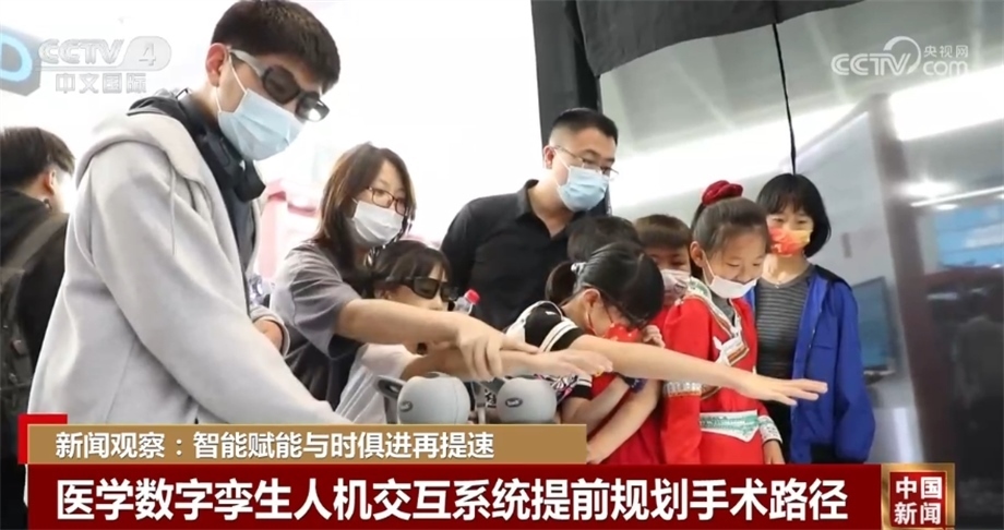 展會上,科研人員設計了一套基于全息現(xiàn)實的醫(yī)學數(shù)字孿生人機交互系統(tǒng),通過對患者數(shù)據(jù)進行建模,在投影的孿生人上生成血管、器官等重要組織結(jié)構(gòu),輔助醫(yī)生進行手術的路徑規(guī)劃。