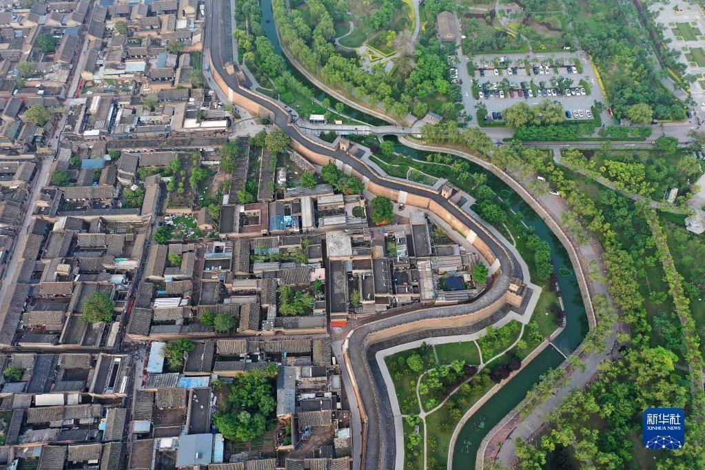 平遙古城一角(5月29日攝,無人機照片)。