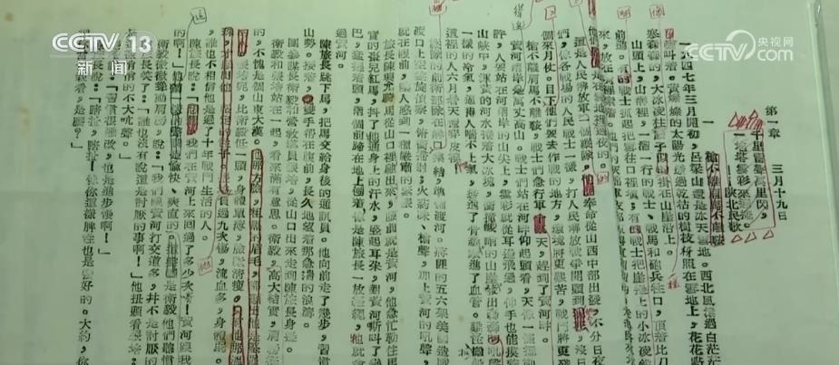 中國出版協(xié)會副理事長兼秘書長 王利明:上邊紅的字就是編輯寫的,紅的墨是助理編輯涂的,紅色下面那些字你還能看得出來,如果用藍色或黑色一畫就看不出來了。出版社編輯和作家本人、地方政府,一起經(jīng)過無數(shù)次修改,才把這本書推出來。