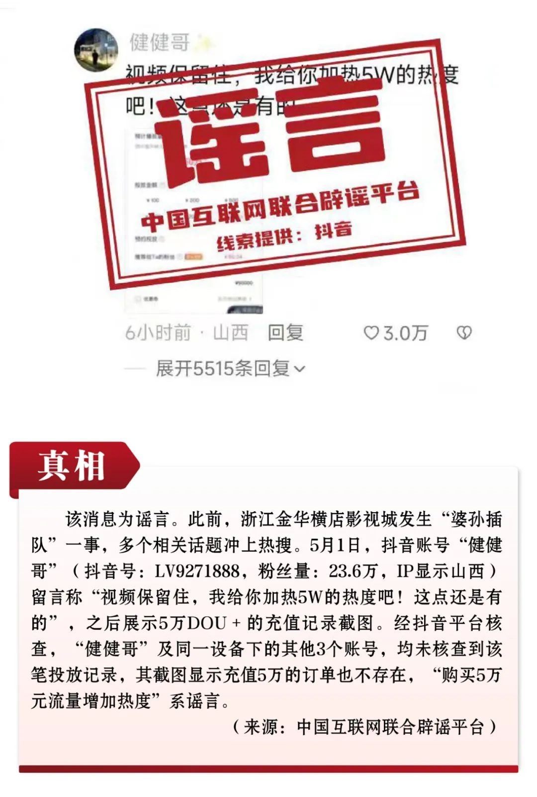 央視網(wǎng)消息:據(jù)中央網(wǎng)信辦舉報(bào)中心消息,中國互聯(lián)網(wǎng)聯(lián)合辟謠平臺(tái)發(fā)布2023年5月辟謠榜。