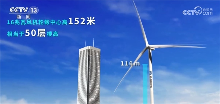 剛才我們看到的葉片只是風(fēng)電機(jī)組的一部分,那么這臺(tái)16兆瓦超大容量海上風(fēng)電機(jī)組整體有多大?它的發(fā)電能力如何?我們一起通過一組數(shù)字更直觀地了解它。