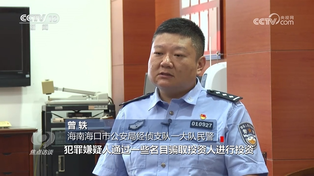 海南??谑泄簿纸?jīng)偵支隊一大隊民警曾軼:“舉報到我們??谑械慕鹑诰?,由金融局牽頭??谑卸鄠€相關(guān)職能單位,包括稅務(wù)、工商、公安相關(guān)單位一起成立了聯(lián)合調(diào)查組。這個公司如果是一個正常的新能源充電樁公司,收益會源源不斷進入公司的賬戶,我們在調(diào)取相關(guān)銀行流水的過程中發(fā)現(xiàn)沒有?!?/p>