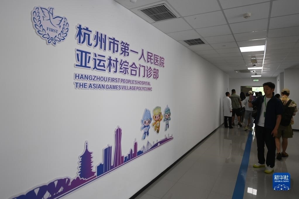 6月16日,媒體記者在亞運(yùn)村運(yùn)動(dòng)員村參觀綜合門(mén)診部。