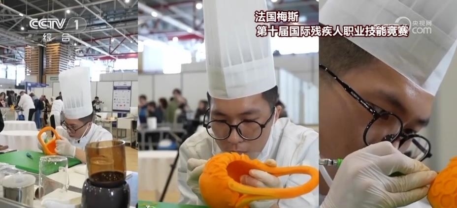 功夫不負(fù)有心人,鄭云海的雕刻技藝不斷精進(jìn),他也開始自主設(shè)計(jì)創(chuàng)作作品,并斬獲了多項(xiàng)國內(nèi)比賽冠軍。2023年3月,在法國梅斯舉辦的第十屆國際殘疾人職業(yè)技能競賽食品雕刻項(xiàng)目比賽中,他奪得金牌,成為食品雕刻界的世界冠軍。