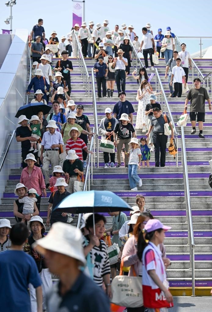 “我們還在觀眾組織上采取了一些柔性措施?!泵檎f,比如,針對比賽時(shí)間較長的足球、籃球、網(wǎng)球、擊劍等項(xiàng)目,在上下場交接過程中出現(xiàn)觀眾流動(dòng)的問題,及時(shí)調(diào)整入場政策,以確保觀眾可以二次入場。