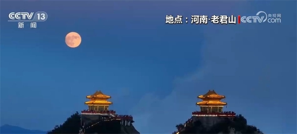在河南老君山主峰,身著漢服的游客托月追思,感受古代文人墨客的詩意情懷,一睹山河壯麗。月色溶溶團圓夜,千里嬋娟情意濃,伴著老君山金頂?shù)臒艄?,吸引了來自全國各地的游客來此打卡賞月。