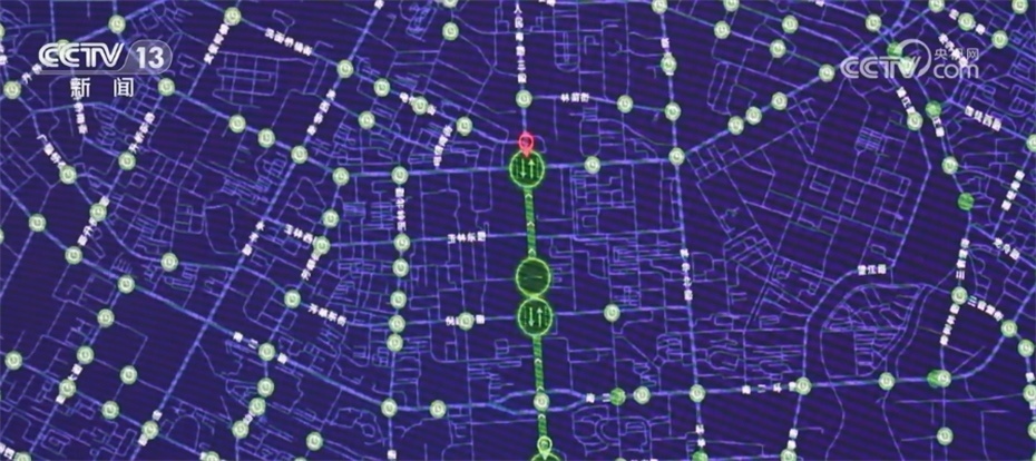 記者在成都市交通信號(hào)燈控制中心的一片大屏幕上看到,成都中心城區(qū)的2000余個(gè)交通信號(hào)燈一目了然,通過智能化控制信號(hào)燈,可以在假期交通擁堵時(shí)形成勻速駕駛下連續(xù)綠燈的“綠波路段”,快速疏解車流。