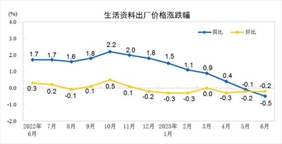 央視網(wǎng)消息:據(jù)國(guó)家統(tǒng)計(jì)局網(wǎng)站消息,2023年6月份,全國(guó)工業(yè)生產(chǎn)者出廠價(jià)格同比下降5.4%,環(huán)比下降0.8%;工業(yè)生產(chǎn)者購(gòu)進(jìn)價(jià)格同比下降6.5%,環(huán)比下降1.1%。上半年,工業(yè)生產(chǎn)者出廠價(jià)格比上年同期下降3.1%,工業(yè)生產(chǎn)者購(gòu)進(jìn)價(jià)格下降3.0%。