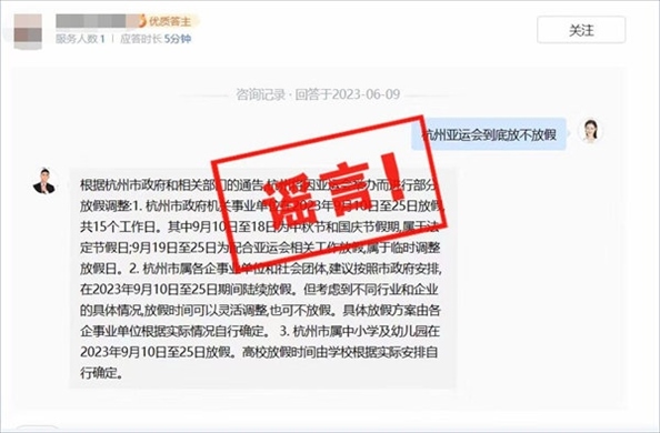 ·杭州因舉行亞運(yùn)會9月10日到25日放假?官方辟謠。