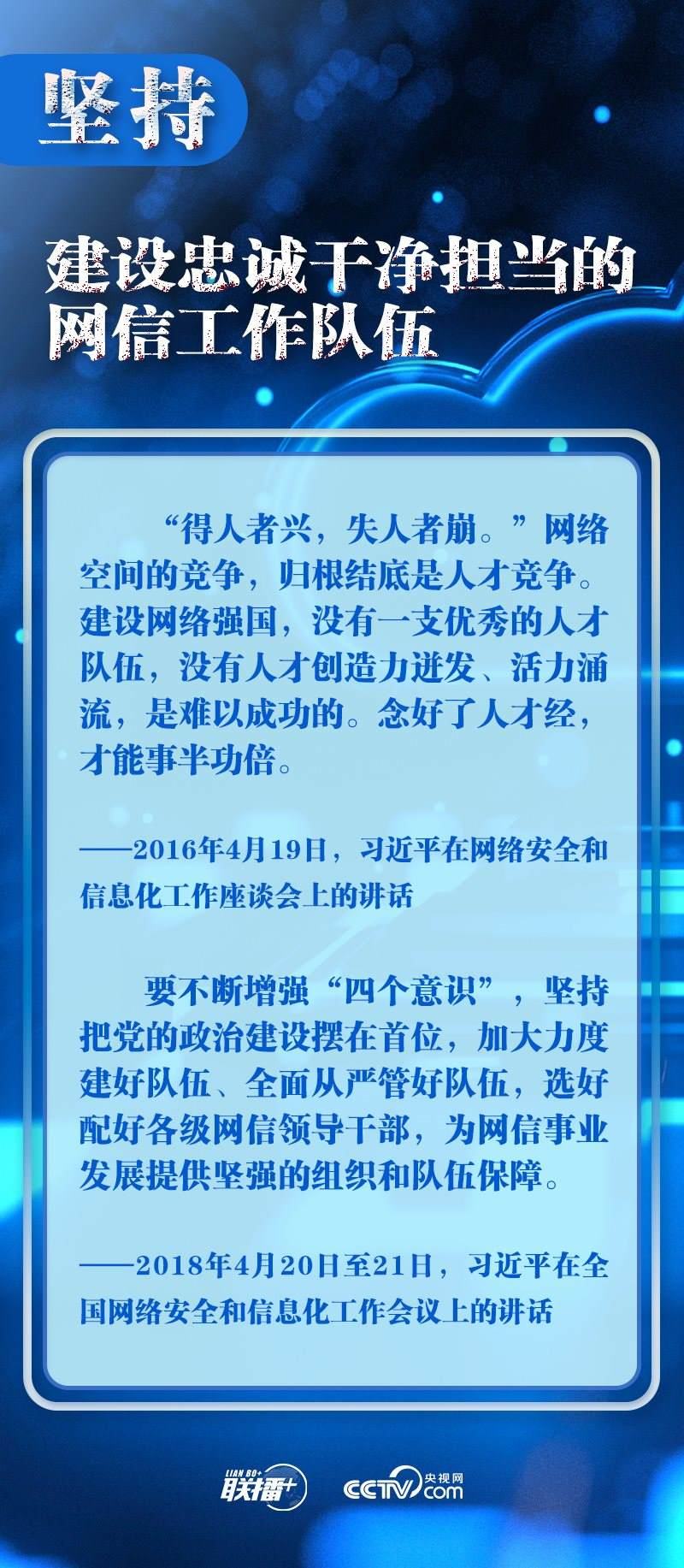 新時(shí)代新征程,網(wǎng)信事業(yè)的重要地位作用日益凸顯。央視網(wǎng)《聯(lián)播+》欄目圍繞總書記提出的十個“堅(jiān)持”,與您一起學(xué)習(xí)總書記關(guān)于網(wǎng)絡(luò)安全和信息化工作的重要思想。