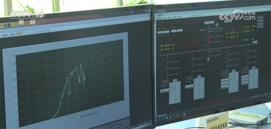 總臺記者 劉澤耕:我們現(xiàn)在來到的是龍羊峽水光互補光伏電站中控室,這塊屏幕上正在變化的數(shù)據(jù)是光伏電站發(fā)電的實時數(shù)據(jù)。光伏發(fā)電存在間歇性、波動性和隨機性等問題。在夜間,光伏電站出力為零,遇到陰雨天氣,云層遮擋住太陽,光伏電站發(fā)電能力也會迅速下降。這些因素都會導(dǎo)致光伏發(fā)電產(chǎn)生的電流呈現(xiàn)鋸齒狀,不僅會對電網(wǎng)造成沖擊,而且電壓不穩(wěn)定也會影響生產(chǎn)生活。而龍羊峽水電站水光互補,完美解決了光伏發(fā)電“靠天吃飯”的難題。