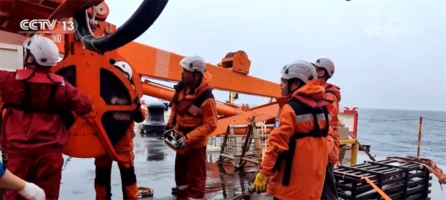 ?????? 而在艉甲板,科考隊(duì)員按次序站位,與科考甲板機(jī)械設(shè)備配合操作。