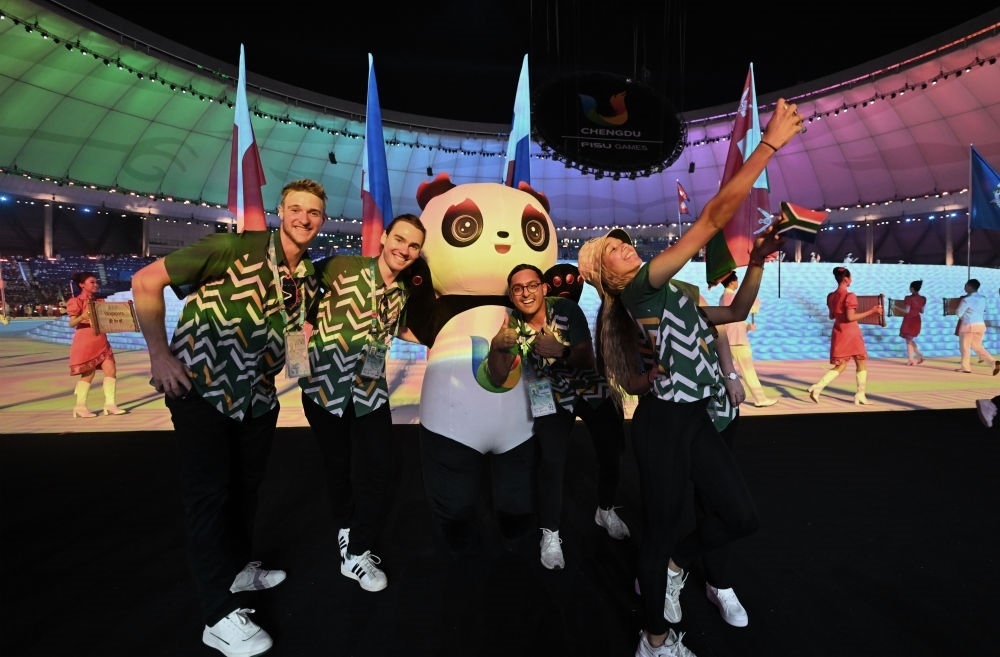 南非大學(xué)生體育代表團(tuán)在開幕式上入場(chǎng)。