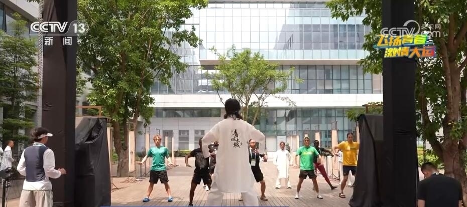 而在大運村的互動體驗中心里,每天上午和晚上都各開設(shè)了兩節(jié)太極課,每節(jié)課都會吸引不少外國運動員參與。他們在老師的帶領(lǐng)下,調(diào)整著呼吸,一招一式打得有板有眼,還有人甚至養(yǎng)成了每天打太極拳晨練的新習(xí)慣。