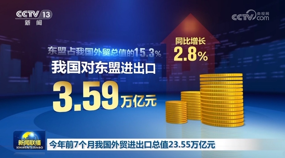 前7個月,我國對第一大貿(mào)易伙伴東盟進出口3.59萬億元,同比增長2.8%。對中亞五國進出口3316.9億元,同比增長35%。對拉丁美洲、非洲分別進出口1.92萬億元和1.14萬億元,同比分別增長5.5%和7.4%。
