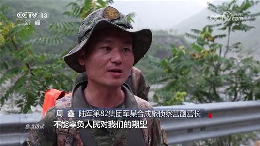 周鑫:“作為人民子弟兵,哪里需要我們,我們就應該及時出現(xiàn)到哪里,不能辜負人民對我們的期望?!?/p>