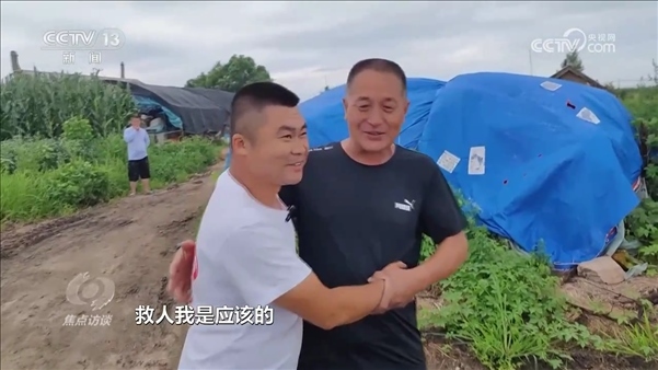 黑龍江五常市安家鎮(zhèn)鐵西村村民董明亮:“我直接搶過膠圈,鞋也沒脫,衣服也沒脫,手機還在兜里,直接就下去救他?!?/p>