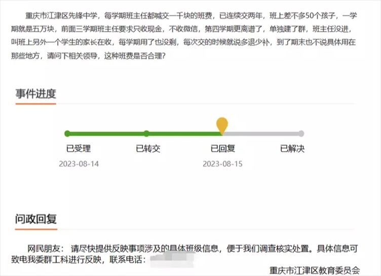 ·重慶江津某中學(xué)一班級(jí)收5萬元班費(fèi),每人一學(xué)期交1000元。區(qū)教委:已啟動(dòng)調(diào)查程序,督促學(xué)校自查。
