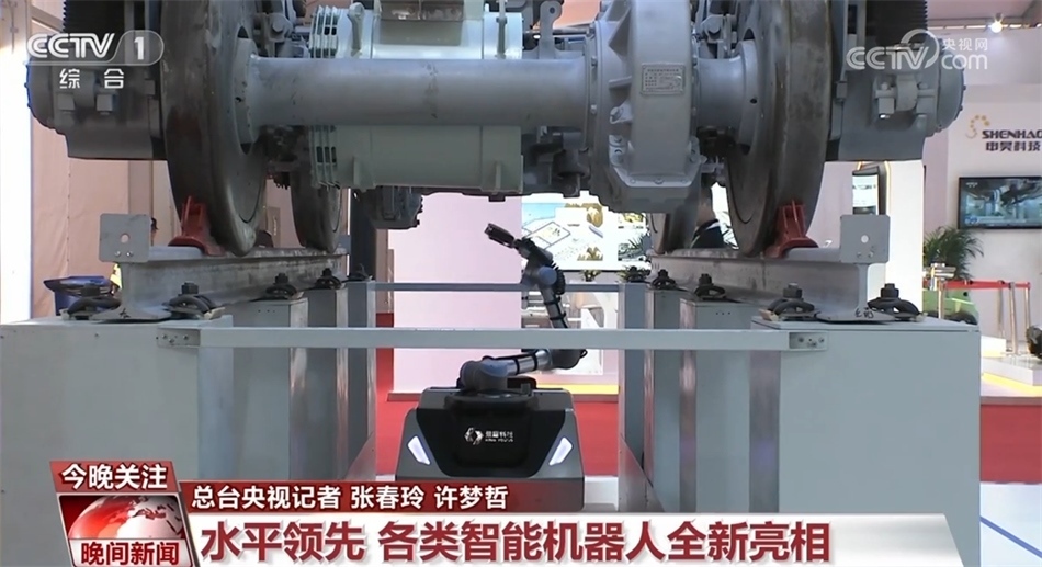 現(xiàn)在您看到的是一款列車智能巡檢機器人,它可以替代成熟的技術工人自主采集車底、車側高清圖像和3D數(shù)據(jù),巡檢定位精度達到正負5毫米。