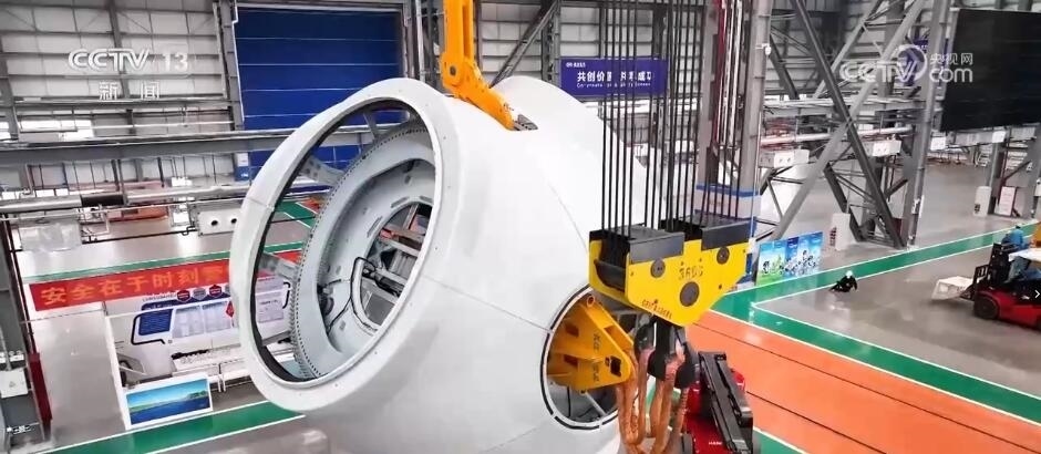總臺記者 趙雄:在現(xiàn)場我們看到,生產(chǎn)一臺機(jī)組所需要的輪轂、發(fā)電機(jī)、傳動裝置等各個部件都匯聚在這里,而這些部件都來自不同的供應(yīng)商。