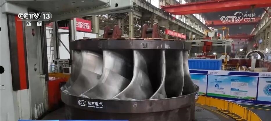 總臺記者 蔣林:我現(xiàn)在就是在位于四川德陽的東方電機(jī)的生產(chǎn)車間,這里也是目前中國最為重要的能源裝備的制造基地?,F(xiàn)在一天全國所發(fā)的電量里面,每4度有1度就來自于這里的設(shè)備。而且根據(jù)我們掌握的最新的生產(chǎn)數(shù)據(jù),也能夠感覺到目前中國能源發(fā)展的新趨勢。截止到2023年的6月底,在過去一年當(dāng)中,這里所生產(chǎn)的設(shè)備里有90%都是清潔能源的設(shè)備。比如,我身旁的這個大家伙,它是華龍一號發(fā)電機(jī)組的轉(zhuǎn)軸,而像這樣的大塊頭在這個廠房里面比比皆是。