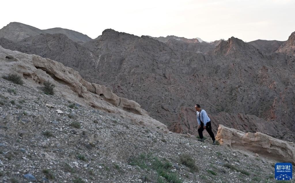 8月20日,董海寧徒步巡查賀蘭山沿線的明長城永寧段。新華社記者 連振 攝