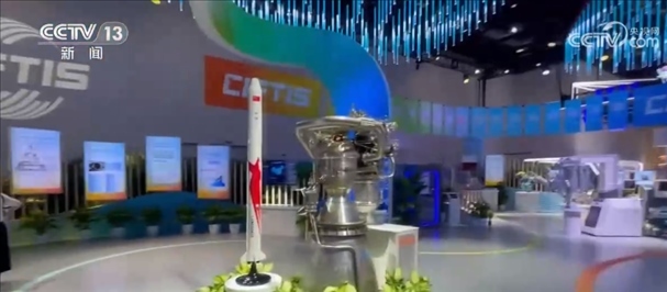 總臺(tái)記者 王豐:這片區(qū)域是綜合展的一個(gè)成就展的專題,這里集中展示了我國(guó)在服務(wù)業(yè)擴(kuò)大開放和服務(wù)貿(mào)易創(chuàng)新發(fā)展方面所取得的一系列成就。比如說(shuō)這個(gè),這是我國(guó)民營(yíng)企業(yè)藍(lán)箭航天自主研發(fā)的朱雀二號(hào)火箭,旁邊是自主研發(fā)的天鵲發(fā)動(dòng)機(jī)。今年7月12日,朱雀二號(hào)成功發(fā)射升空,是世界上首款將載荷送入預(yù)定軌道的液氧甲烷火箭。
