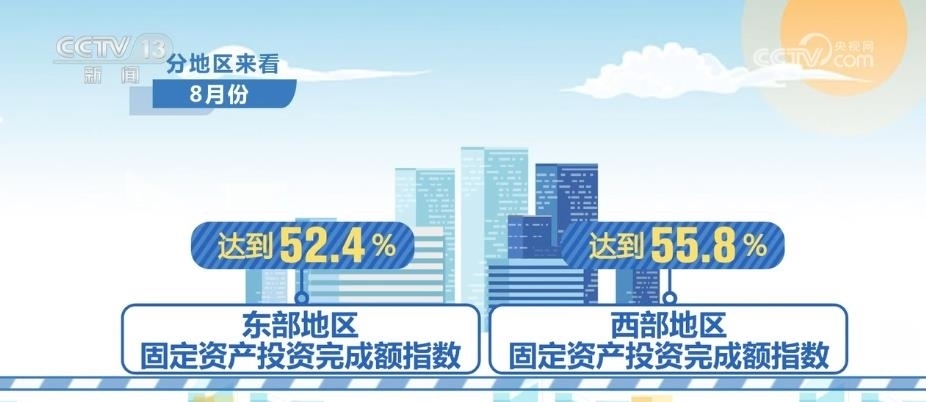 8月份,固定資產(chǎn)投資完成額指數(shù)為50.6%,2023年2月份以來一直呈擴(kuò)張態(tài)勢(shì)。分地區(qū)來看,8月份,東部和西部地區(qū)固定資產(chǎn)投資完成額指數(shù)分別達(dá)到52.4%和55.8%。