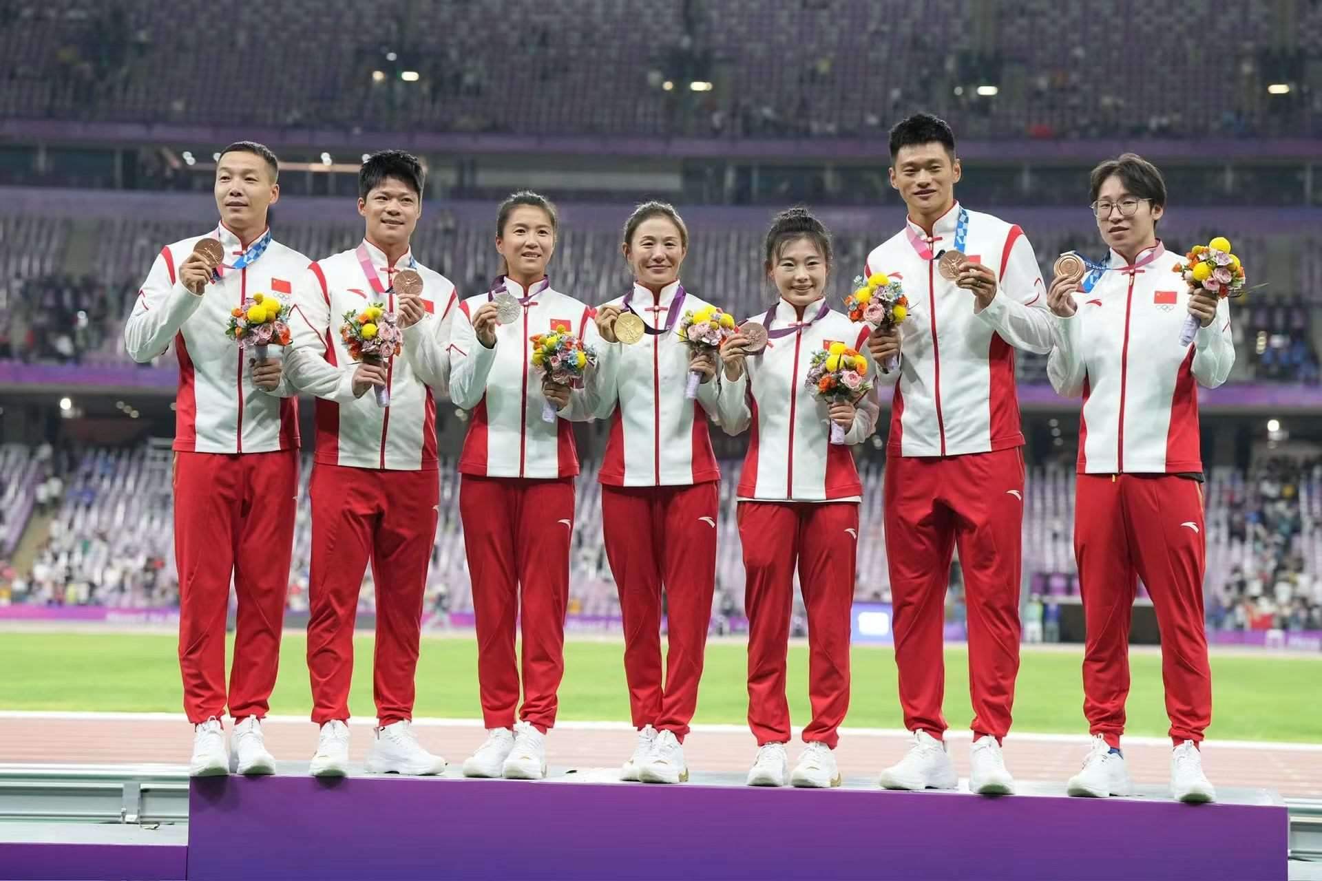 10月4日晚,在杭州亞運(yùn)會田徑比賽全部結(jié)束后,中國奧委會為蘇炳添、謝震業(yè)、吳智強(qiáng)、湯星強(qiáng)、切陽什姐、劉虹和呂秀芝補(bǔ)發(fā)了奧運(yùn)會獎牌。