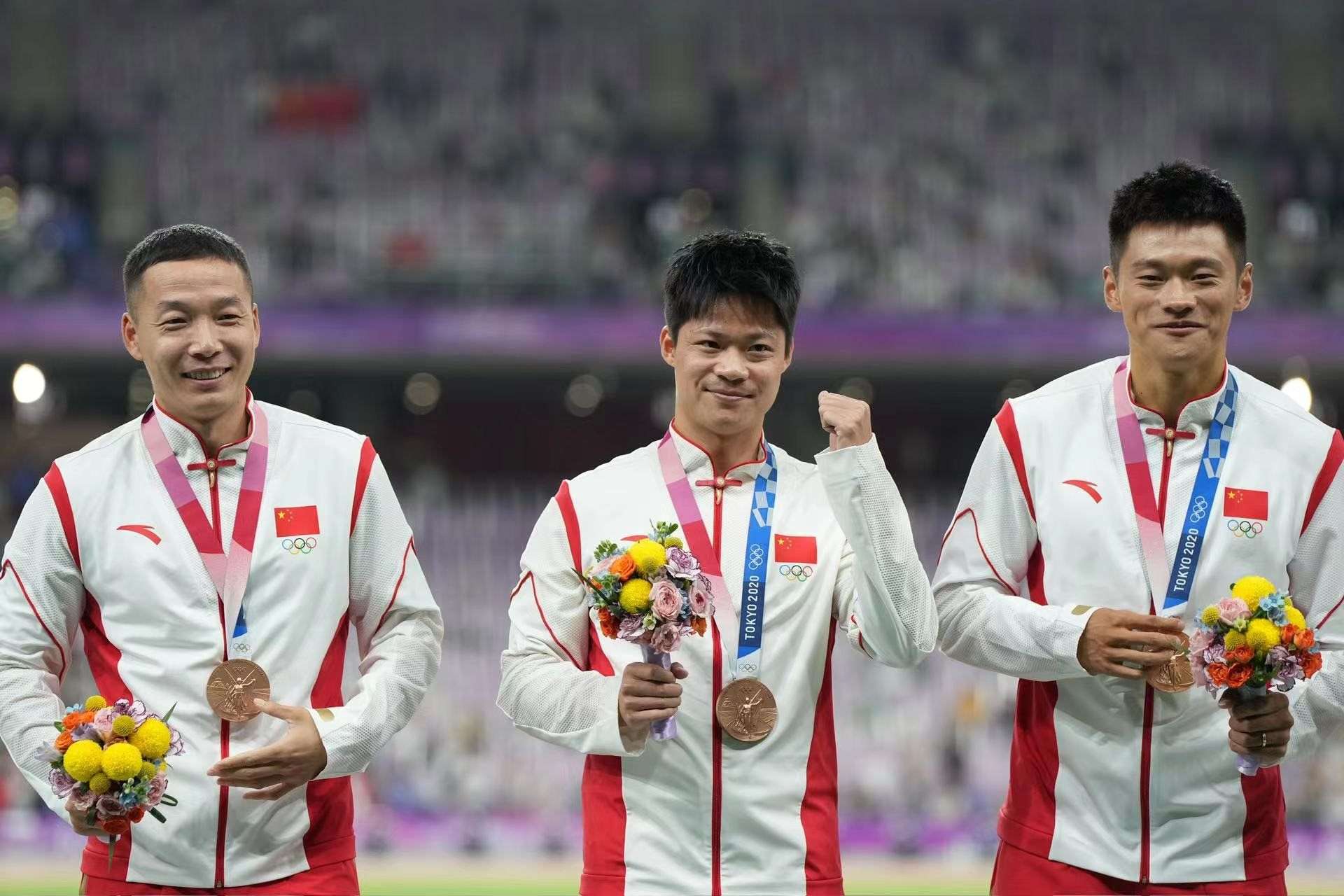蘇炳添、謝震業(yè)、吳智強(qiáng)、湯星強(qiáng)參加了東京奧運(yùn)會田徑男子4×100米接力決賽,并在比賽中第四個沖過終點(diǎn)。去年2月,國際體育仲裁法庭裁定英國運(yùn)動員烏賈在東京奧運(yùn)會期間違反了反興奮劑條例,取消英國隊(duì)男子4x100米接力成績并收回所獲銀牌,中國男子4x100米接力隊(duì)因此遞補(bǔ)獲得銅牌。這是中國男子4x100米接力隊(duì)首次在奧運(yùn)會上獲得獎牌。