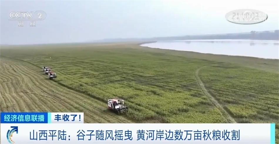 山西平陸:谷子隨風搖曳 黃河岸邊數萬畝秋糧收割