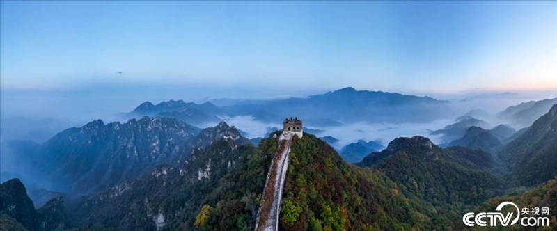 北京,箭扣長城周圍層林盡染,云霧縹緲,宛如仙境。