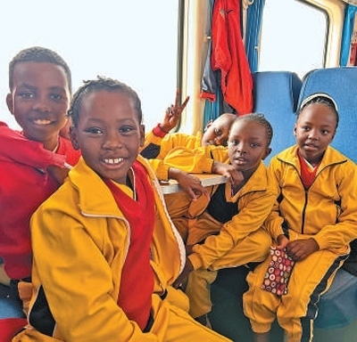 蒙內(nèi)鐵路是中國(guó)與肯尼亞共建“一帶一路”標(biāo)志性工程。圖為肯尼亞學(xué)生高興地乘坐列車出行。本報(bào)記者 張志文攝