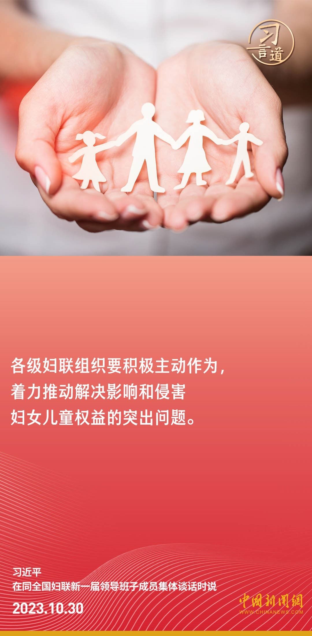 中共中央總書記、國家主席、中央軍委主席習近平30日下午在中南海同全國婦聯(lián)新一屆領(lǐng)導班子成員集體談話并發(fā)表重要講話。習近平強調(diào)——