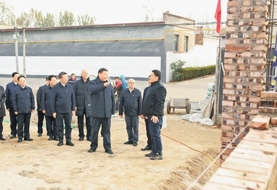 11月10日,中共中央總書記、國(guó)家主席、中央軍委主席習(xí)近平在北京、河北考察災(zāi)后恢復(fù)重建工作。這是10日下午,習(xí)近平在河北保定涿州市刁窩鎮(zhèn)萬(wàn)全莊村房屋重建施工現(xiàn)場(chǎng)考察。新華社記者 鞠 鵬攝