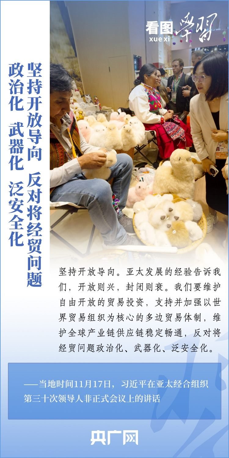 當地時間11月17日上午,亞太經合組織第三十次領導人非正式會議在美國舊金山舉行。國家主席習近平出席會議并發(fā)表題為《堅守初心 團結合作 攜手共促亞太高質量增長》的重要講話。習主席在講話中全面闡述了中國對深化亞太合作、促進地區(qū)和世界經濟增長的重要主張,以“四個堅持”提出多項務實舉措,希望同各方一道努力,共同打造亞太下一個“黃金三十年”。一起來學習!