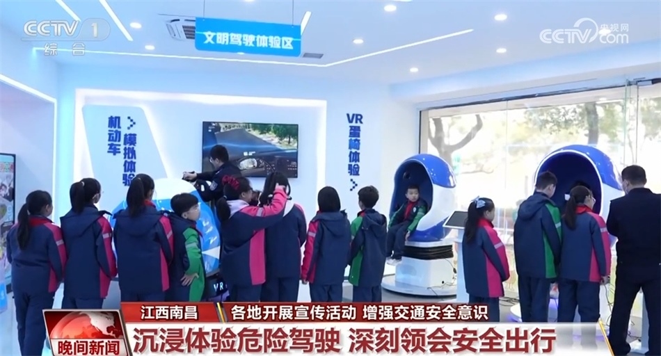 在江西南昌公安交通治理體驗(yàn)中心,來自南昌市郵政路小學(xué)的同學(xué)們?cè)诿窬膸ьI(lǐng)下,開展了一堂別開生面的交通安全課。大家戴上VR設(shè)備,通過機(jī)動(dòng)車模擬駕駛、交通事故模擬裝置等,沉浸式體驗(yàn)了酒駕醉駕、超速等交通違法行為的場(chǎng)景。晃動(dòng)的座椅給同學(xué)們帶來了事故撞擊的震感,旋轉(zhuǎn)的設(shè)備更是讓同學(xué)們身臨其境地感受到酒后駕駛的眩暈。