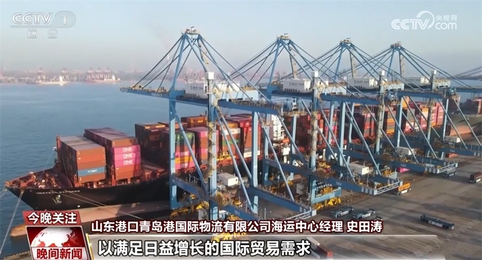 山東臺(tái)記者 辛鵬:我現(xiàn)在是在青島港前灣港區(qū)集裝箱自動(dòng)化碼頭,靠泊在我身后105泊位的“烏奈札快航”即將起航,開啟中國(guó)山東至美國(guó)東部的新年首航之旅。