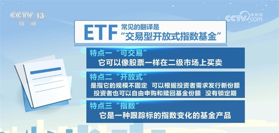 央視網(wǎng)消息:在2023年的資本市場(chǎng)上,有一類產(chǎn)品受到了投資者關(guān)注,從產(chǎn)品的種類到規(guī)模都出現(xiàn)明顯增長(zhǎng),這就是ETF,也就是我們常說(shuō)的“交易型開(kāi)放式指數(shù)基金”。那么什么是指數(shù)基金,ETF又具體包含哪些內(nèi)容呢?我們來(lái)了解一下。?