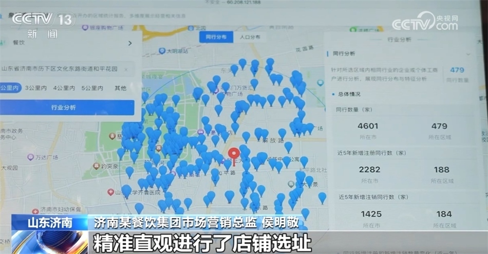 濟南某餐飲集團市場營銷總監(jiān) 侯明敬:我們通過“濟南公共數(shù)據(jù)開放網(wǎng)”上的“泉城商業(yè)選址”應(yīng)用,精準(zhǔn)直觀進行了店鋪選址。比如說兩公里內(nèi)餐飲同行有479家,人口總量超過了24萬人,其中31—50歲的比例最大,占到了29.9%,這和我們這家餐廳比較適合商務(wù)聚會、家庭聚會的市場定位非常吻合。