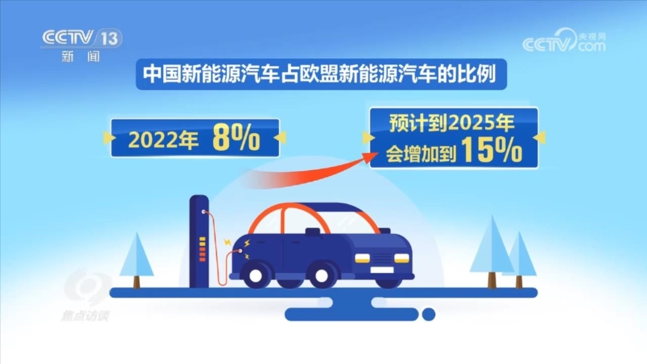 中國新能源汽車出口覆蓋的國家不斷增多,歐洲和北美等發(fā)達地區(qū)開始成為重要市場。據統計,2023年中國新能源汽車出口排名前三位的國家是比利時、泰國和英國。有數據顯示,2022年,中國新能源汽車占歐盟新能源汽車的比例為8%,預計到2025年,中國品牌將占的比例會增加到15%。中國新能源汽車進入汽車工業(yè)發(fā)達國家,說明中國的汽車產品正在形成全球競爭力。
