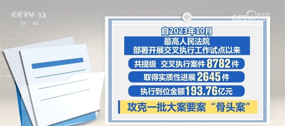 最高人民法院介紹,執(zhí)行難中常見被執(zhí)行人是當(dāng)?shù)刂匾髽I(yè)、納稅大戶,甚至是重點(diǎn)國企或行政部門等情況。交叉執(zhí)行就是要讓接受指定的法院在不受牽絆、沒有包袱、完全依法自主的條件下力推案件執(zhí)行。據(jù)統(tǒng)計(jì),開展交叉執(zhí)行工作試點(diǎn)以來,共提級(jí)、交叉執(zhí)行案件8782件,取得實(shí)質(zhì)性進(jìn)展2645件,執(zhí)行到位金額193.76億元,攻克了一批大案要案“骨頭案”。最高人民法院要求,上級(jí)法院發(fā)現(xiàn)原執(zhí)行法院存在消極執(zhí)行、拖延執(zhí)行等執(zhí)行不力情形,發(fā)現(xiàn)違紀(jì)違法問題線索的,應(yīng)當(dāng)嚴(yán)肅依紀(jì)依法查處、追究責(zé)任。