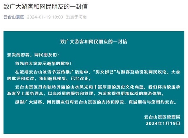 ·云臺山景區(qū)就“男女妲己”道歉:向大家表示誠摯的歉意,已經改正。