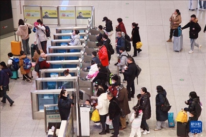 1月26日,旅客在徐州東站排隊(duì)檢票乘車。新華社發(fā)(劉建華攝)
