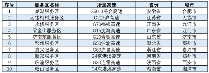 表 春節(jié)較繁忙服務(wù)區(qū) (全文圖表均來自交通運(yùn)輸部路網(wǎng)監(jiān)測與應(yīng)急處置中心官方微博)