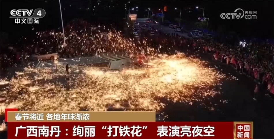 在廣西河池南丹縣,一場絢爛的“打鐵花”非遺表演點(diǎn)亮夜空。一勺勺滾燙的鐵水在匠人的擊打下化作一朵朵鐵花璀璨綻放,市民紛紛拿出手機(jī)拍照打卡,記錄這美麗的瞬間。