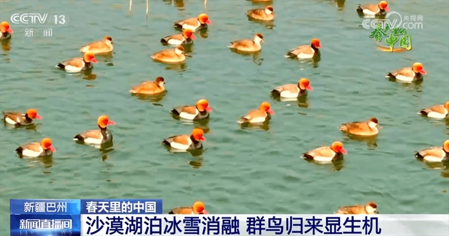 伴隨著陣陣?guó)B鳴,我們來(lái)到新疆巴州尉犁縣羅布淖爾國(guó)家濕地公園,碧綠的水面上,成群結(jié)隊(duì)的赤嘴潛鴨、赤麻鴨等鳥(niǎo)類時(shí)而用翅膀拍打水面展翅飛翔,時(shí)而三五成群在水中喜戲、覓食,群鳥(niǎo)與黃沙、碧水、葦叢、胡楊交相輝映,形成一幅生機(jī)勃勃的春日畫卷。