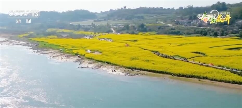 這里是長(zhǎng)江入渝后的第一個(gè)成片油菜花海。由于河床泥沙適宜油菜生長(zhǎng),當(dāng)?shù)剞r(nóng)民也有了種植油菜的傳統(tǒng)。每年三月,大地就像鋪上了一層金燦燦的地毯,成為游客親近自然、休閑游玩、共享生態(tài)福利的好去處。