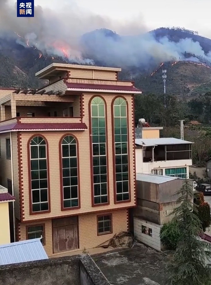 當地居民表示風勢較大,火勢正向村莊方向蔓延,距離民房還有一定距離,明火和煙霧清晰可見。