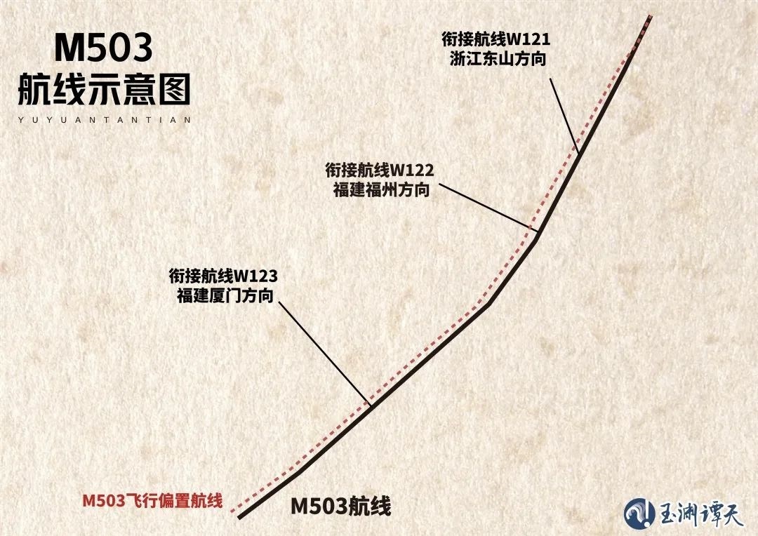 這樣的背景下,在經(jīng)過(guò)國(guó)際民航組織(ICAO)核準(zhǔn)后,這條代碼為M503的新航線正式落地,與之相配套的還有三條銜接航線,即飛往浙江東山的W121、飛往福建福州的W122和飛往福建廈門的W123。